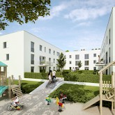 Das "Karree Donaustrand" besticht durch die überschaubare Größe der Anlage - sie gruppiert sich in U-Form um einen grünen Innenhof.